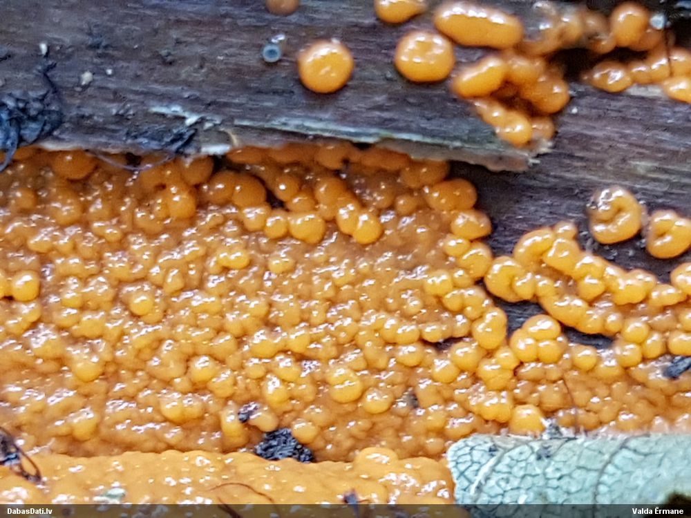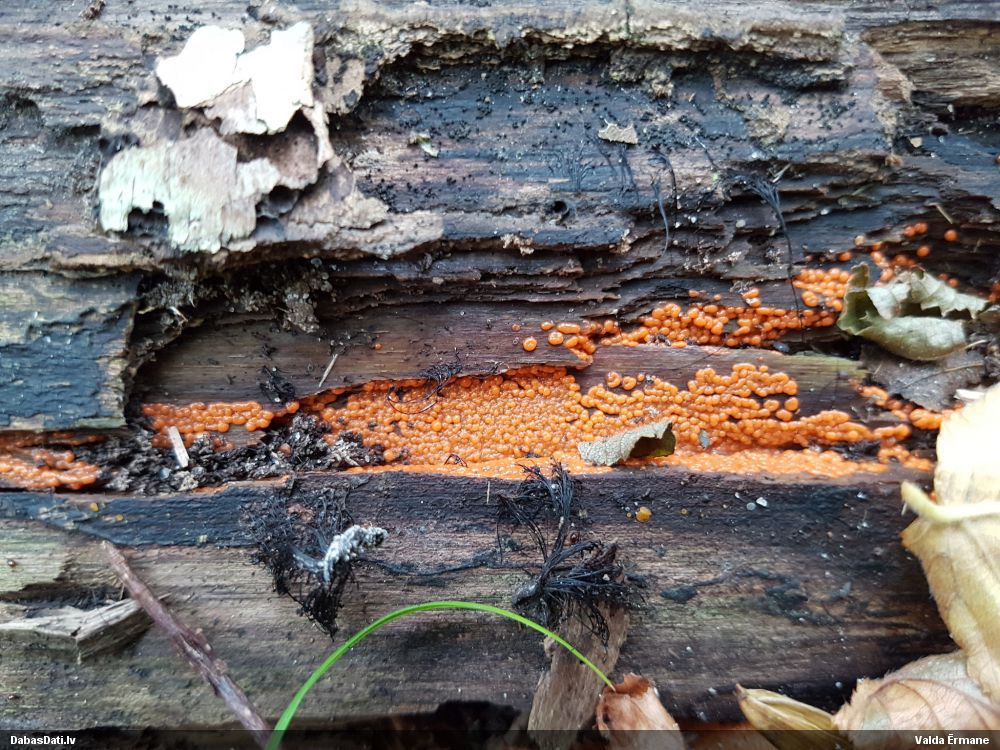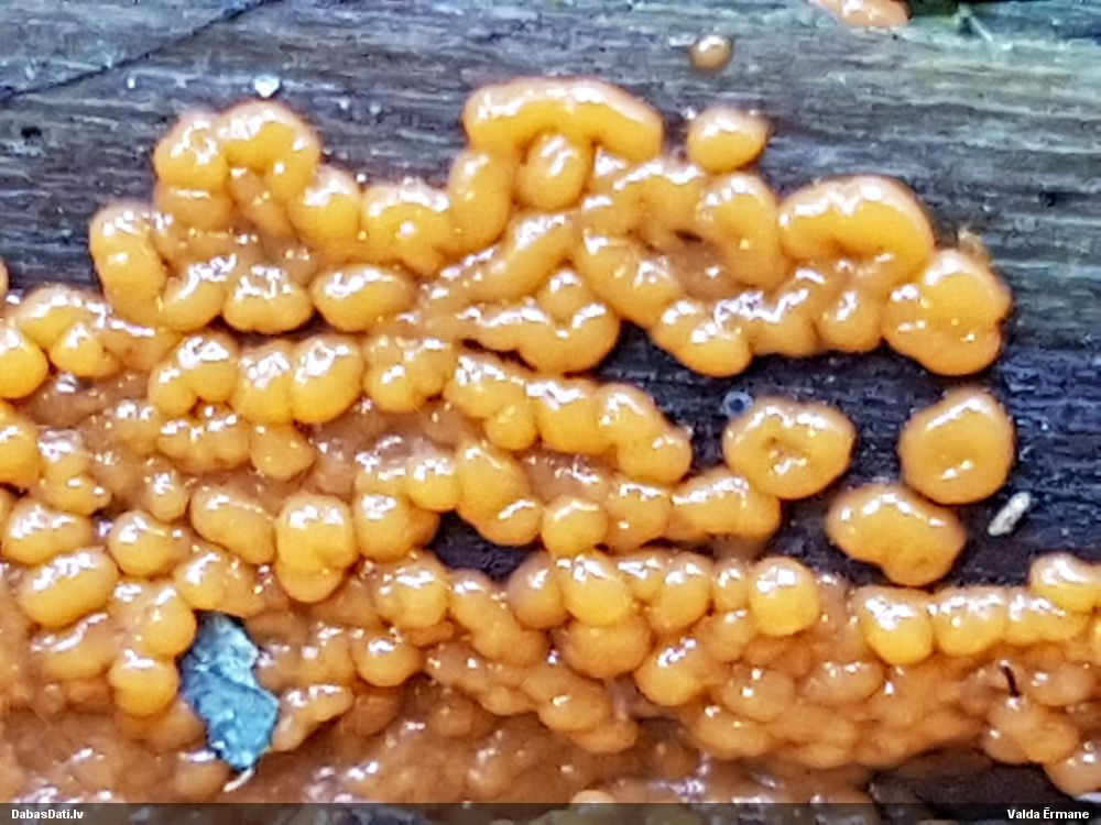 Skatoties uz nelīdzeno virsmu, var būt grubuļainais Fuligo luteonitens, bet droši to varētu pateikt mikroskopijā pēc sporām