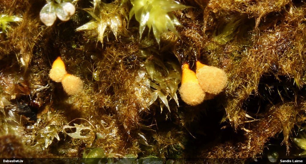 Teiktu, ka medainā bumbulīte. Redz vertikāli izstieptus augļķermeņus (ne pilienveida).