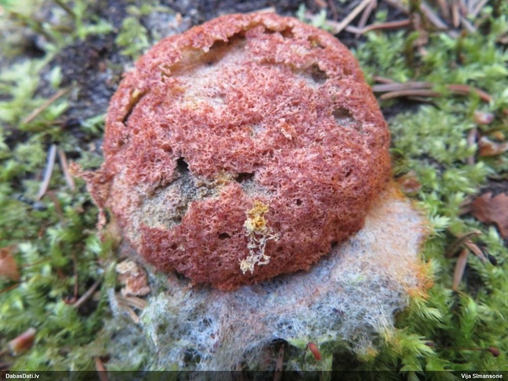 Pakāje tiešām rūsgana vai tikai tā izskatās? Skaidri redzu baltu pakāji un dzeltenu plazmodiju. Rūsganais tāds nesaprotams. Principā varētu būt arī dzeltenais ragansviests. ja tomēr rūsgans - tad licentii. Pēc rufas gan neizskatās, tā arī uz sūnām īsti neaug