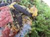 Šis varētu būt tāds piemērs, kad sāk dzīvi uz koksnes un tad uzplešas virsū sūnai. Man izskatās, ka šai vajadzētu būt rufai, nu tāds sarkans. Pat divi perīdiji 2. foto no apakšas tīri pārliecinoši - dzeltenais plānais un tad pa virsu malā var redzēt tumšo.