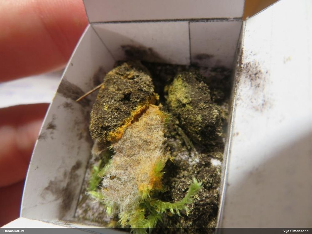 Iveta, liels paldies par vērību! Vajadzētu ievākt paraudziņu. Īpaši otrajā novērojumā kapilīcijs izskatās ar gariem pavedieniem, izstiepies krustām šķērām. Bet vispār kārpainajai mizainei kapilīcijs var pat nebūt, parasti tā tik daudz nav (ja rūpīgi paskatās kārpaino mizaiņu foto, tad tas dzeltenais ir kā pulveris (sporas), pavedieni (kapilīcijs) īpaši vispār nav ievērojami). Es teiktu, ka tā nav kārpainā mizaine, pat ja izskatās, ka ir vāciņi. Var būt gan pilienītes, gan kāda cita mizaine vai tai līdzīga. Es pati ne reizi vien esmu mizaines ar pilienītēm sajaukusi, tāpēc bez mikroskopēšanas reti tās nosaku, ja jau ir iespēja pārbaudīt. Pasaule par substrātiem līdz sugai ļoti reti ko saka, mums pārsvarā ir pašu pētījumi, bet to jau ir gana daudz, lai kko varētu secināt.