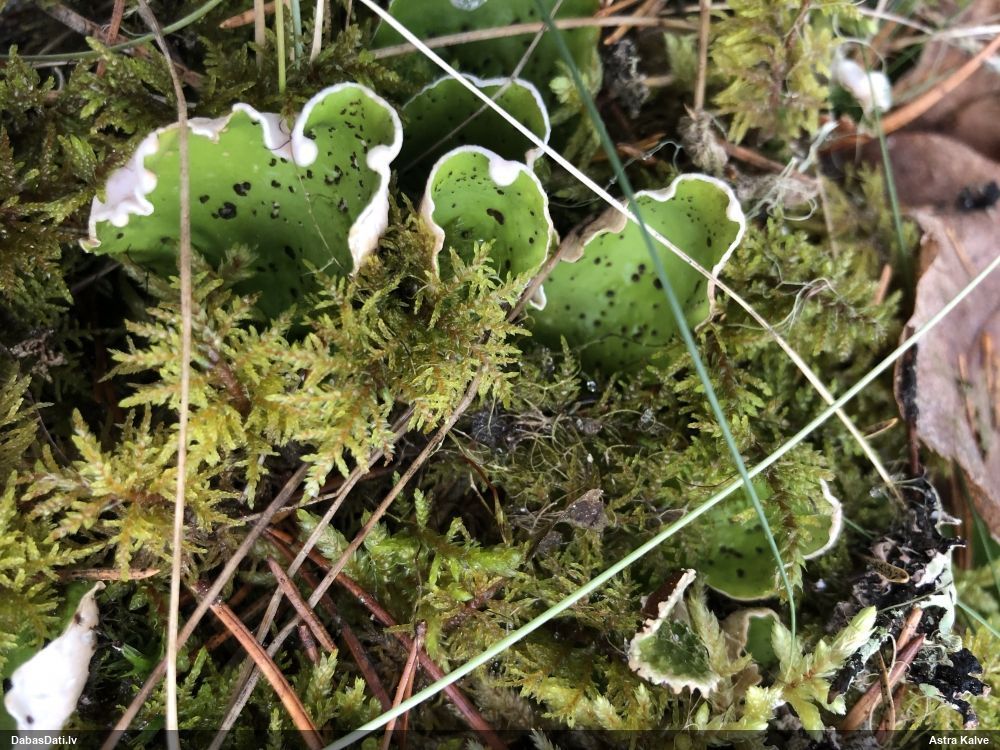 Raivo, nebūs Chaenotheca furfuracea, bet gan C.brachypoda (dabisku mežu indikatorsuga). C.furfuracea ir ar izteiktu laponi, daudz lielāki aķ un košāk zaļa krāsa