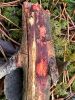 Skujkoks nav par tuvumā. Ir tikai lapu koki - lazda, kastanis, ābelītes. Otrpus celmam (D pusē) lejasdaļā, ko pamanīju pirmo, arī bija kaut kas no šim līdzīga, bet tik izsporojies, ka palicis tikai paliels brūns sporu pleķis. Intriga pavērot nākamgad.
