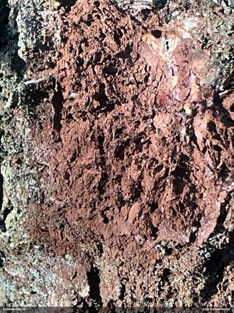Tas ir lieliski! :) Jā, sporas atbilst, tur laikam nav šaubu. Vienīgā līdzīgā ar tādām sporām ir Diacheopsis insessa, kurai būtiski atšķiras kapilīcijs, kas pagaidām nav novērots, bet tā, cik atradu, novērota uz ķērpjiem uz dzīvu lapukoku stumbriem (bērzs, kalnu kļava). Viena no retajām ģints sugām, kas nav pēcsniedzīte. Ļoti reta un reģistrēta tikai 7 valstīs. [Raivo, izskatās, ka šī suga varētu būt Tev nākamais līmenis :)))] Raivo īpašas uzslavas par uzcītību, meklējot Diacheopsis resinae trīs sezonas pēc kārtas! Liels iedvesmas avots tagad sasparoties arī citiem - jāatrod vēl! :)) Paraugu, bez šaubām, gribēšu, kapilīciju vajadzētu atrast, jo galu galā visas sugas zinātnē jau nav vēl aprakstītas. Tas ķidātais eksemplārs ir pilnībā izķidāts, vai kādas paliekas vēl no tā ir palikušas? Cik saprotu, paaugstināta grūtība atrast, jo jāmeklē melns uz melna, ne gluži uz pašiem sveķiem? Būs skaidrāka vīzija, kur skatīties!