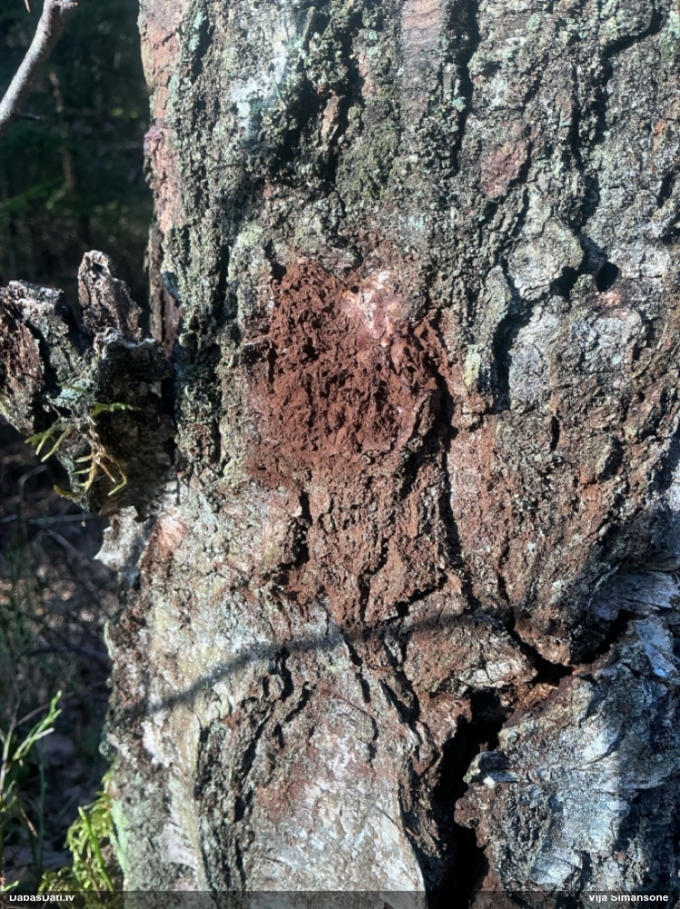 Mazie dzīves prieciņi! :) Lūk, pie kā noved cilvēku iedvesmošana uz gļotsēņošanu, nepieciešamas tikai pareizi iestatītas un sugu redzošas acis. Paraugs tika ķidāts ar pietāti, vēl ir pietiekami daudz materiāla. Atrašanai noteikti jāizmanto 40x lupa ar gaismiņu, bez tās neiztikt. Konkrētā sveķainā egle atšķīrās no visām pārējām, bija noliekusies 45 grādu lenķī, pasargāta no tiešiem nokrišņiem. Īpaša uzmanība jāvelta samtaini melnajam micēlijam, ar ko noklātas senas sveķainas rētas. Ja tiek ieraudzīti gļotsēnes augļķermeņi, tad viss uzreiz kļūst skaidrs. Tie ir pietiekami izteiksmīgi. Novēlu veiksmes visiem, kuri vēlas šo būtni ieraudzīt savām acīm! Vakar pārskatīju arī citas DMB audzes, tomēr bez sekmēm. Tomēr prasības pret dzīvotni nav gluži izšķirošas, Dānijā atrasta arī stādītās mono-audzēs. Jāturpina meklēt retās sugas :)