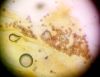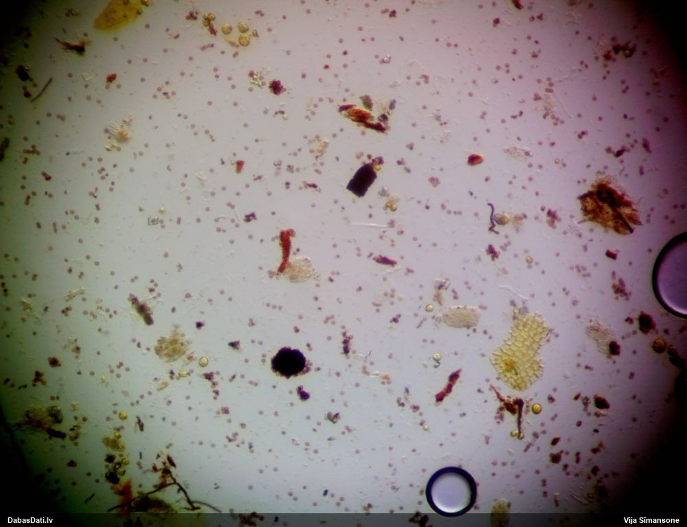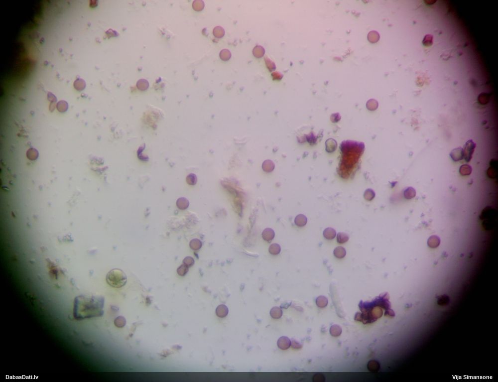 Atradu paraudziņu. Pamatīgi saēsts, nesagrauztais sakaltis ciets.. Taisīju vairākas mikroskopijas, kamēr izdevās atrast nesaplīsušas sporas.
