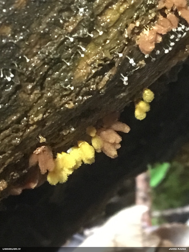 Paldies, Iveta! Julita, kā redzi – nevis dzīvs, bet tikai pusdzīvs ;) Par atrašanu – joprojām darbojos pēc principa bez piecām/sešām atrastām sugām no 250x250 m kvadrāta ārā neiet. Ja nav kritalu – rāpoju pa sūnām. Šis bija viens no kvadrātiem bez sugām, izvēlējos kritalu, tā bija patukša, blakus kritalai pamanīju šīs gļotsēnes. Beigās šajā vietā esmu iesprūdis, būs vēl daži interesanti atradumi. Tik jāatrod laiks mikroskopēšanai, sugu noteikšanai un salikšanai DD. Laika kā reiz šobrīd ļoti maz un brīvajos brīžos drīzāk gribas atkal aizskriet uz savu sūnu pleķi :) Par nosaukumu – domāju, ka rīkojamies līdzīgi kā ar Tavu Diachea (bij. Craterium) muscorum – tā kā šai sugai mums nav iegājies krāterītes nosaukums, saucam par vizulīti. Kaut, piekrītu, drīzāk izskatās pēc krāterītes.