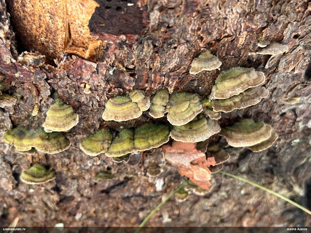 2. foto pakāje izskatās viegli rozīga, pats augļķermenis arī tāds nav tīri dzeltens, mazliet brūngani pleķi. Plus augšanas laiks septembrī uz plikas koksnes (ne sūnām) - viss liecina, ka drīzāk vajadzētu būt F.licentii