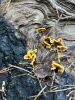 Ļoti neparasta kombinācija - īsa melna kājiņa un apaļīgi plakana galviņa. Un uz nobirām. Gļotsēņu atslēga kā cerīgāko piedāvā nabas jāņodzīti, bet tai neredzu "nabiņu" un nobirām arī nav raksturīga. Šķirstot noteicēju, visas līdzīgās atduras pret pēcsniedzītēm, kas gluži nevarētu būt :D Olītēm melnas kājiņas nav tipiskas (ja tiešām melna), tad paliek lampītes. Par garkājas lampīti (kā blakus) vismaz pagaidām šo nosaukt grūti ;) Atliek cerēt, ka nobriedīs tiktāl, lai mistēriju izdotos atrisināt :)