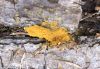 Man pēkšņi radās ideja - vai tur bija nu ļoti mitrs mikroklimats, egle ar melnalksni? Hipotētiski tādas dzeltenas var būt Diachea muscorum. Te bilde ir mazliet līdzīga: https://fr.wikipedia.org/wiki/Fichier:Craterium_muscorum,_Trawscoed,_North_Wales,_Aug_2016_-_Flickr_-_janetgraham84.jpg