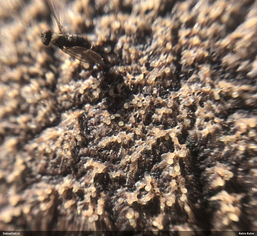 Vai tik nebūs medainā bumbulīte? Augļķermeņi vertikāli izstiepti, sporu mākonis ciešā klājienā.
