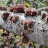 Šīs varētu būt jaunas pumpurītes (Physarum sp.) vai lampītes (Lamproderma sp.)