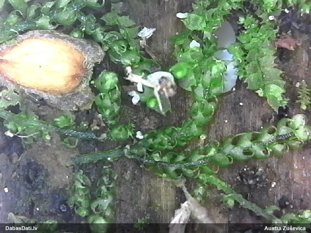 Paldies, Raivo! Ar acu gaišumu man arvien sliktāk, bet mikroskops palīdz. Jā, gribēju teikt, ka paraugam, ja vien nav kāda jutīga atradne, kurai drīkst ievākt tikai mazu gabaliņu, vērts ievākt lielāku gabalu, jo gļotsēnēm patīk kompānija. Un mikroskopa mazajos palielinājumos ar sānu papildus apgaismojumu ir vērts rūpīgi "izstaigāt" visu paraugu. Arī ķērpjus un interesantas sīksēnītes tā var atrast, ko dabā nepamanītu. Ar kriksītēm ir dažādi - pirmās es tā arī tikai citu sugu paraugos pamanīju, bet vēlāk redzēju arī dabā kriskīšu plantācijas - ja to ir daudz, tad var pamanīt jau dabā. Uz sūnām gan ir ekstrēms gadījums, dabā droši nepamanītu, arī eksemplāra noņemšana no sūnas nebija pārāk veiksmīga, tāpēc par noteikšanu mazliet šaubos (sporām mazliet cits tonis). Bet pagaidām citas hipotēzes nav (un konkrētā eksemplāra arī vairs ne).