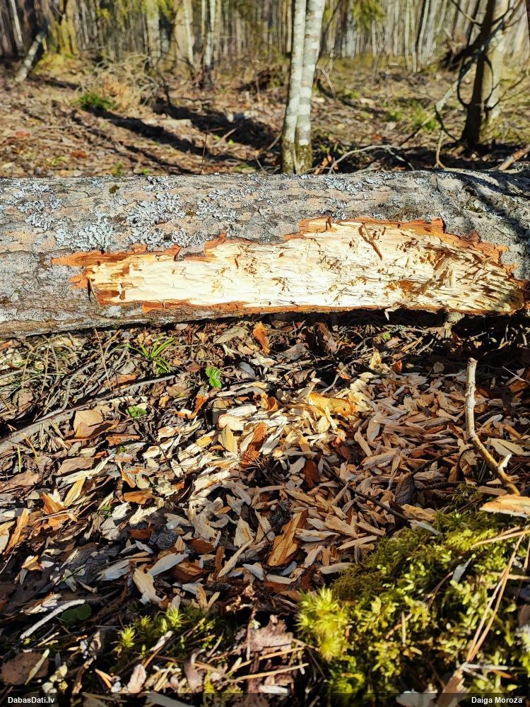 Jā, zem mizas uz nokaltušas priedes.