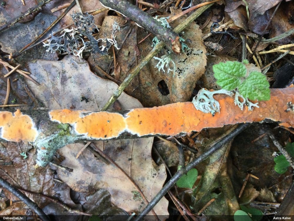 Priekš aurantiaca galīgi neatbilst jaunu augļķermeņu krāsa (kam sākumā jābūt zaļgani dzelteniem). Variants ir C.intricata, bet te mikroskopijā grūti saskatīt brīvo galu skaitu mezglos, tāpēc ātrumā droši noteikt nevaru.