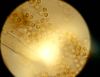 Vai sporu mākonis bija staipīgs? (tā vajadzētu būt režģa gļotsēnei) Foto vairāk līdzinās kādai no pilienītēm.
