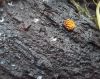 Man pēkšņi radās ideja - vai tur bija nu ļoti mitrs mikroklimats, egle ar melnalksni? Hipotētiski tādas dzeltenas var būt Diachea muscorum. Te bilde ir mazliet līdzīga: https://fr.wikipedia.org/wiki/Fichier:Craterium_muscorum,_Trawscoed,_North_Wales,_Aug_2016_-_Flickr_-_janetgraham84.jpg