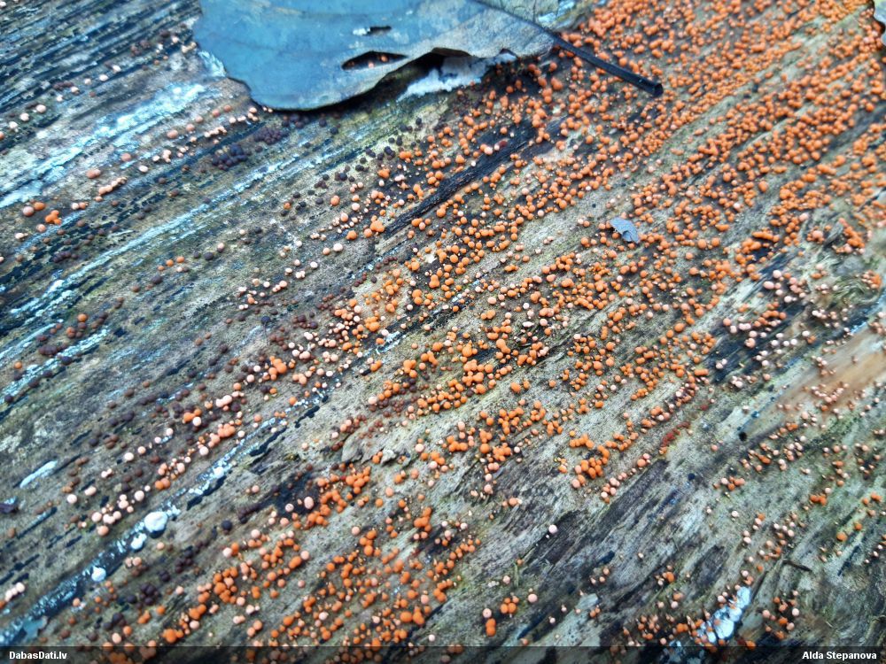 Skatoties uz nelīdzeno virsmu, var būt grubuļainais Fuligo luteonitens, bet droši to varētu pateikt mikroskopijā pēc sporām
