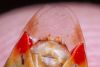 Rūtiņa ir 1mm, par kājiņu es arī nevaru saprast - drīzāk nav nekā ir :) Nobriedušas ir netīri pelēkbaltas ar ļoti trauslu perīdiju. Pagaidām daivās neplaisā, grūti pateikt, kā plaisā, ja nepieskaras augļķermeņiem. "Kraukšķīgs perīdijs", tas ir kā? Pie mazākā pieskāriena tas saplīst gabaliņos, bet vai kraukšķ? :) Sarkans nav, iekšpuse perīdijam balta, bet pskatīšos vēl.